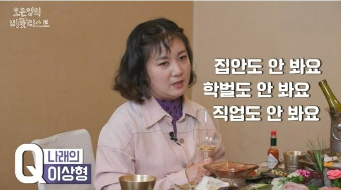 그러나 그녀는 "근데 코드라는 것이 저의 인생에 있어서 중요하더라"라며 "같은 것을 공유하는 사람이 필요할 것 같다"고 말하면서 "코드도 잘 맞고 잘생겨야 하니까 어려운 것 같다"라며 허탈하게 웃었습니다.