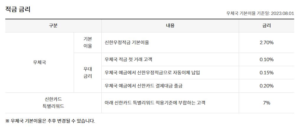1. 우체국 신한우정적금 혜택