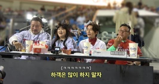 박지안이 이국주에게 "너도 LG아냐?"라고 묻자 이국주는 "저는 맛있는 구장 팀 팬이다. 지난번에 고척에 가서는 키움을 응원했다. 시구는 SK에서 했는데. 저는 야구를 잘 모른다"고 답하며 맥주를 마셔 웃음을 자아냈습니다.